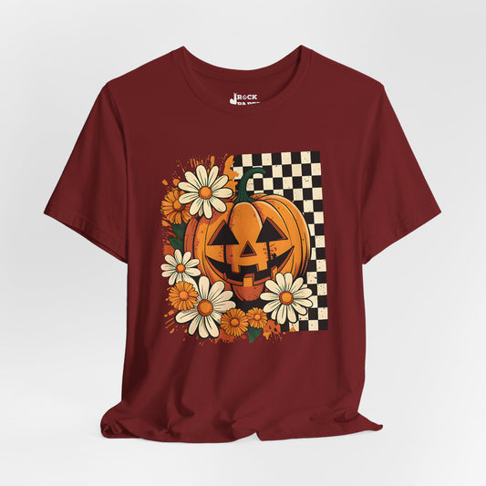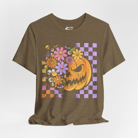 Checkered Floral Pumpkin Halloween T-Shirt